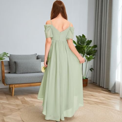 HOT ! Junior Bridesmaid Dresses Plus Size for Teen Girls Off Shoulder High Low Party Gown with Ruffle Sleeves US 12 Dusty Rose