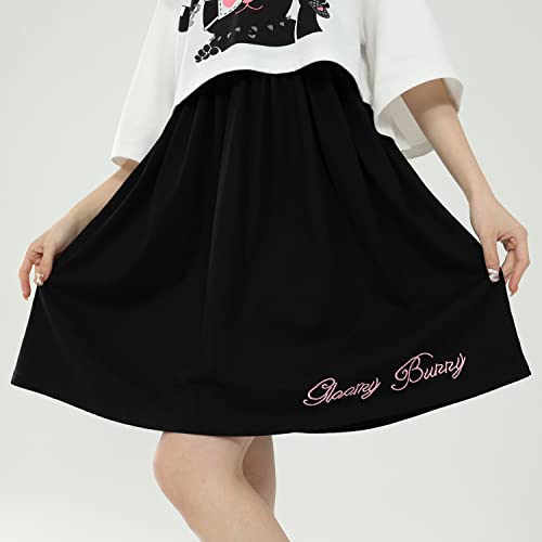 • Features: off shoulder white loose crop top with cute fashion bunny print, high waist black sleeveless slip dress with kawaii pink embroidered text, breathable and comfortable fit in summer. Japanese Style Lolita Casual Short Dress, Soft Comfy Cotton Dress