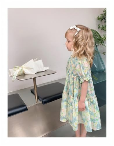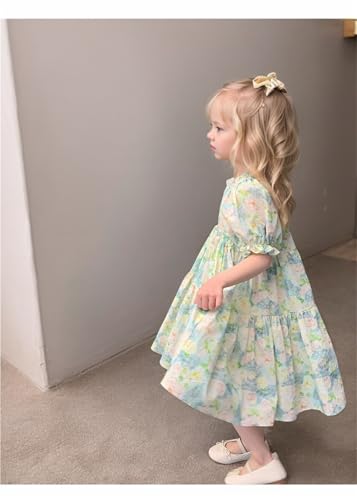 HOT ! Girls' Floral Short Sleeve Dresses Kid Crew Neck High Waist Casual Formal Elegant Fall Dress