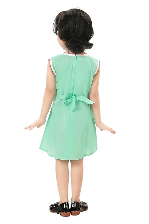 Girls Cotton Summer Dress, Sleeveless A-Line with Whale Embroidery, Pearl Trim Neckline 4