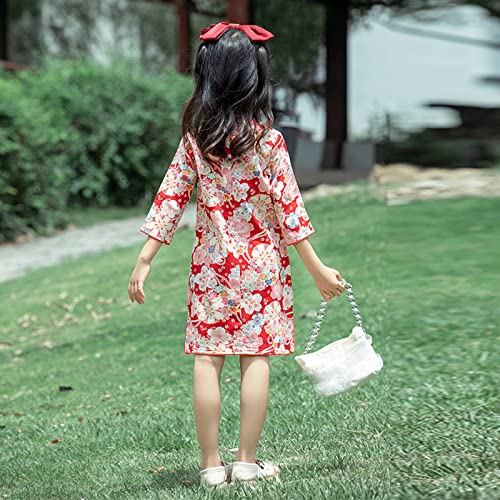 KAGAYD Chinese Girls Dress Peony Rose Qipao Half Sleeve Cheongsam Wedding Dresses Princess Birthday Party Costume 5