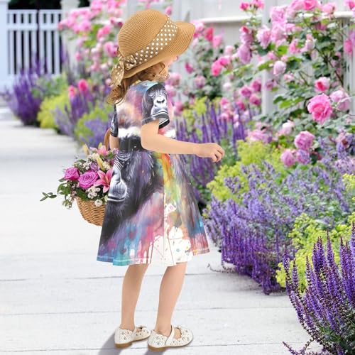 Toddler Dresses for Girls Gorilla Painting Flower Shirt Dress 2t Short Sleeve Little Girl Dress 7