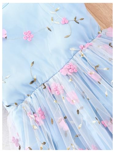 SHENHE Girl's Mesh Floral Embroidered Tulle Dress A Line Flowy Spaghetti Strap Boho Midi Sundress 3