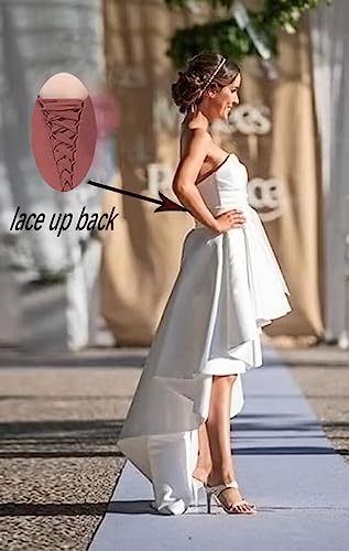 • High Low Prom Dresses,Satin Strapless Evening Dress Wedding Dresses for Bride A line Pleated Ball Gown