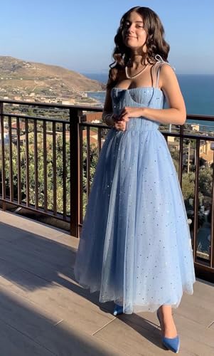 Xijun Women's Sparkle Starry Tulle Prom Dresses Tea Length Sweetheart Corset Formal Evening Party Gowns 1
