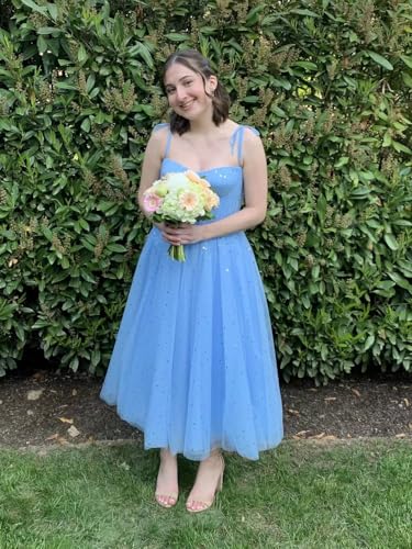 Xijun Women's Sparkle Starry Tulle Prom Dresses Tea Length Sweetheart Corset Formal Evening Party Gowns 6