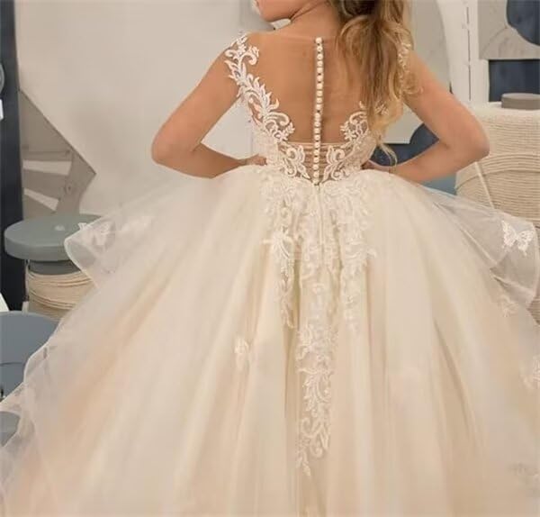 Flower Girl Dresses for Wedding Ruffled First Communion Dress Tulle Pageant Dress for Girls 4
