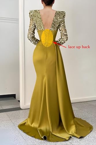 More information about Sequin Mermaid Prom Dresses 2024 Long Sleeve Satin Sparkly V-Neck Evening Formal Wedding Party Gown with Slit