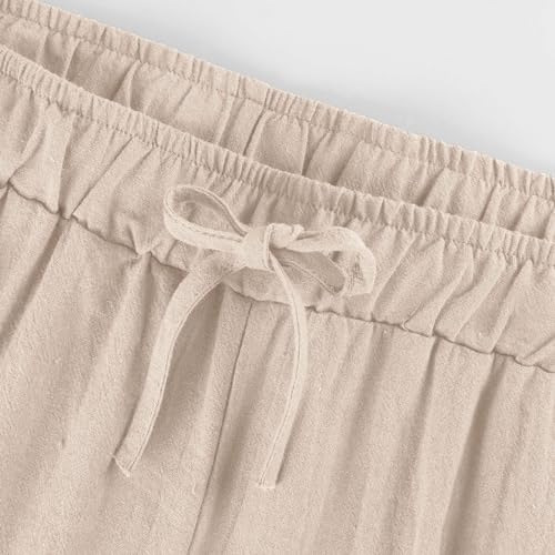 Cropped Linen Pants Women Casual High Waisted Wide Leg Lounge Pant 2025 Loose Lightweight Cotton Capris with Pockets 4