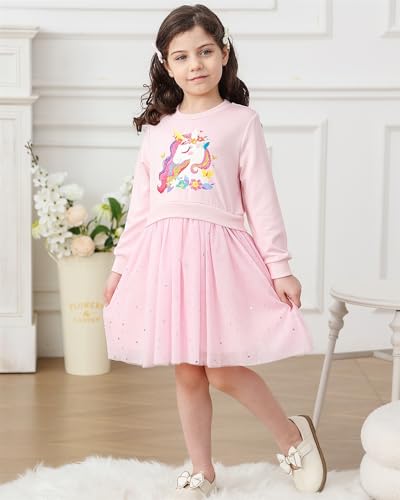 • Design: Cute unicorn, dinosaur, butterfly, flower, Halloween, Christmas designs printed girls sweat party dress, glitter design for a sparkling and stylish look