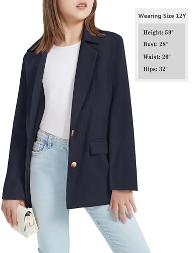 EXARUS Girls Blazer Jacket Long Sleeve Teen Notched Collar/Lapel Collar with Pocket Open Front Casual Kids Blazers Suit 6