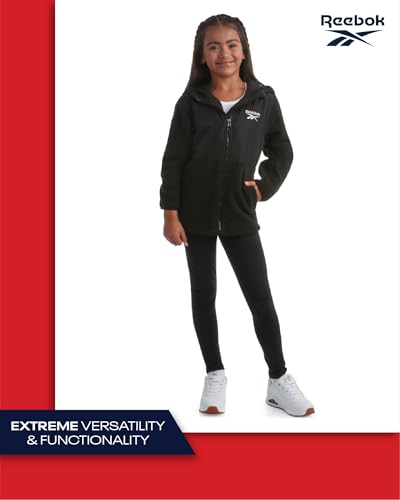 HOT ! Reebok Girls Sweatshirt - Lightweight Polar Fleece Zip Up Hoodie Jackets for Girls Weather Resistant Outerwear Coats (4-16)