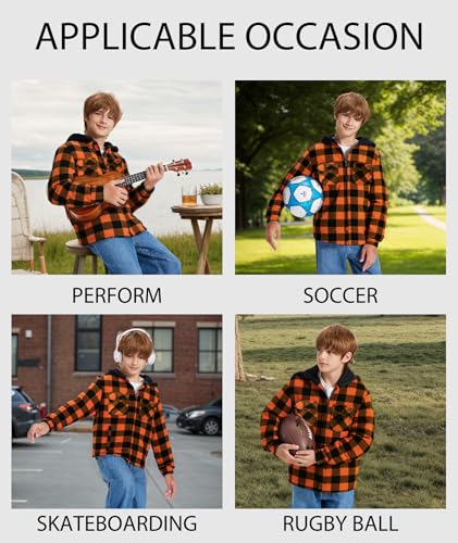 ZITY Boys Flannel Shirt Jacket Fleece Sherpa Lined Plaid Jackets Unisex Coat Full Zip Hoodie Girls Winter Outwear 6-15 Years 4