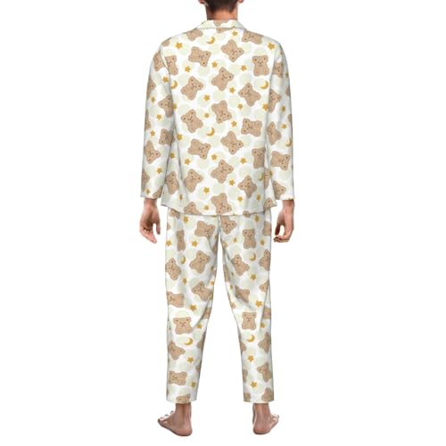 Mens Pajamas Set - Kawaii Bear Long Sleeve Sleepwear Nightwear Pjs Lounge Pajama Sets For Men 3
