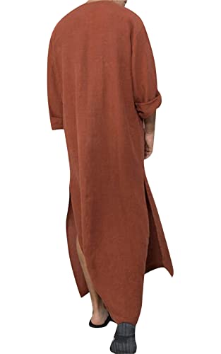 AIEOE Men's Kaftan Long Sleeve Button Up V-Neck Linen Robes with Pockets Long Gown Casual Shirt for Beach Summer 5