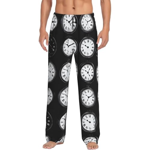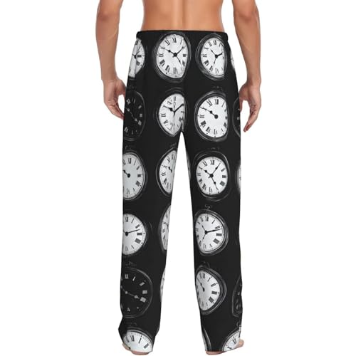 Mens Pajama Pants - Comfy Vintage Clock Pattern Print Pjs Sleep Bottoms for Mens Lounge Pants with Pockets 1