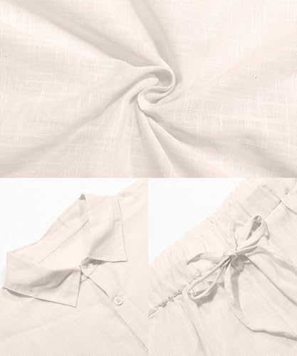 • Timeless elegance: Our short-sleeved button-down shirts have a classic fit that promises timeless elegance and comfort. The design includes an elegant button-down closure, a turn-down collar and a versatile solid color. Paired with our casual linen shorts with an adjustable drawstring waist and plenty of pockets, this ensemble is the epitome of summer sophistication.