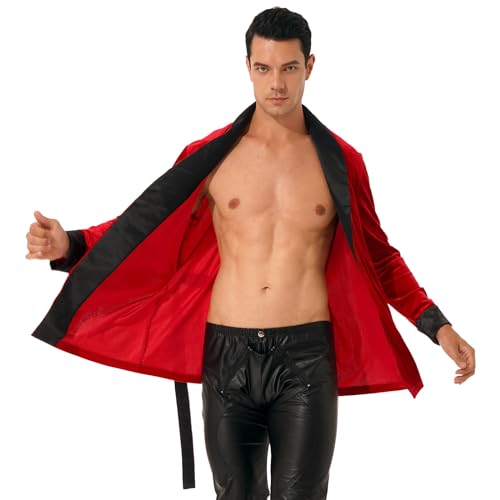 HOT ! Men's Vintage Velvet Bachelor Smoking Jacket with Belt Short Loungewear Robe for Home Dinner Christmas Party