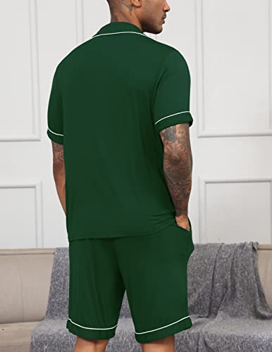 Veseacky Mens Cotton Pajama Set Short Sleeve Square Collar 2 Piece Nightwear Shorts with Pockets Summer Sleepwear PJS Green XL 1