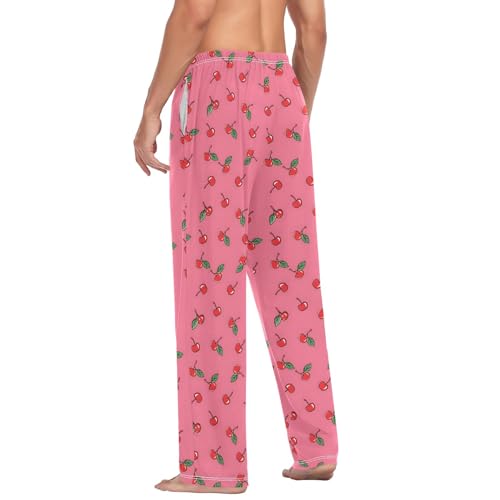 Mens Cotton Pajama Pants Sleep Lounge Pj Bottoms Sleepwear with Pockets Drawstring S Red Cherry 2