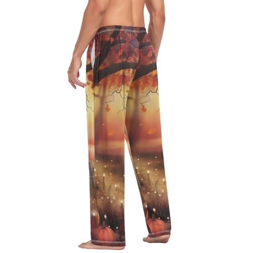 HOT ! Men's Pajama Pants Autumn Pumpkin Harvest Thanksgiving Sleep Pajama Lounge Pant with Pockets, Elastic Waistband
