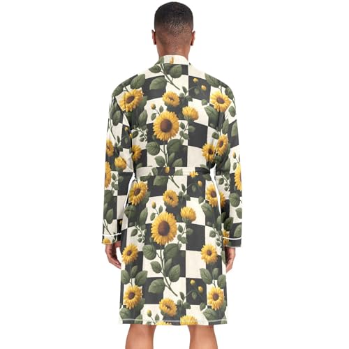Men’s Robe Plaid Sunflower Print, Long Sleeve Bathrobe for Sleep Shower-M 4