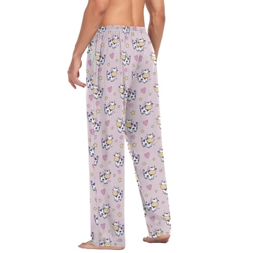 Vdsrup Men's Pajama Pants Cute Cow Star Heart Pajama Pants for Men PJs Bottoms Drawstring Pockets Sleep Lounge Pants S 4