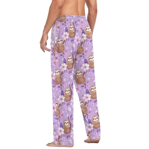 Men's Pajama Pants Purple Flowers Sloth Pajama Pants for Men PJs Bottoms Drawstring Pockets Sleep Lounge Pants S 6