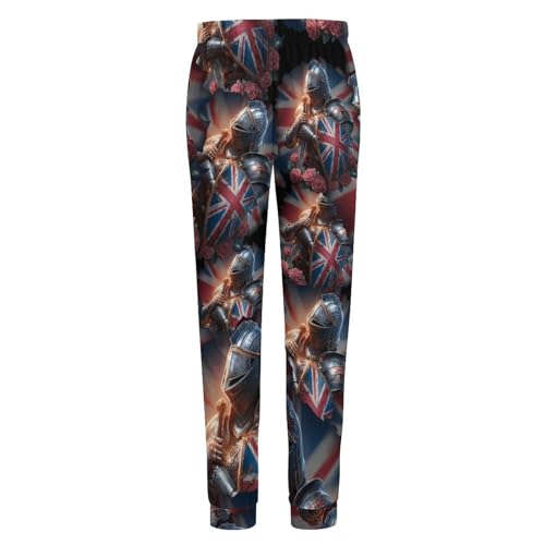 Knights British Flag Roses Men's Pajama Bottoms Sleep Lounge Soft Comfy Pants Sleepwear 3