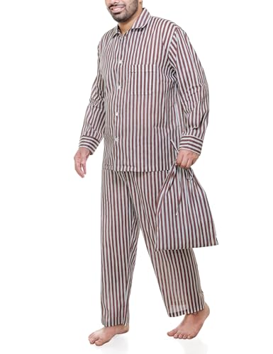 • Soft 100% Cotton Fabric for Extra Comfort: Made from 100% high-quality cotton with a stylish lined pattern, these men's pajamas are soft, breathable, and perfect for a good night’s sleep or relaxing at home.