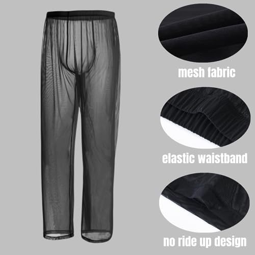 ZONBAILON Mens Mesh See Through Pajama Sheer Lounge Lightweight Sleepwear Tranparent Nightwear Leggings Bottoms 3