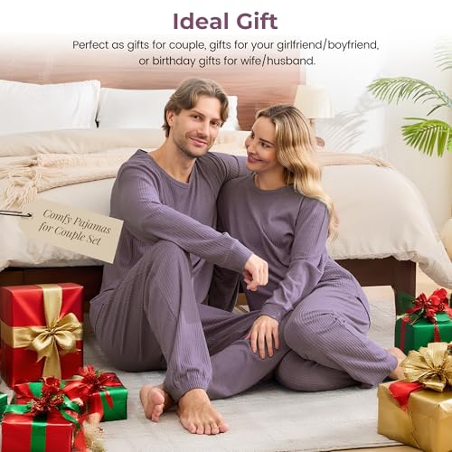 Ribbed Knit Matching Pajamas for Couples - Soft Cozy Pjs Long Sleeve Top & Wide Pant Sleepwear | Home & Lounge 1