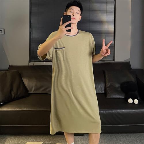 • Design: Men’s nightgown features simple solid color, big and tall, oversize, casual loose fit, straight tube design, no buttons, round neck, short sleeves, knee length, and a thoughtful pocket on the chest for storing items. Mens t shirt dress nightgown is available in two colors: gray and green