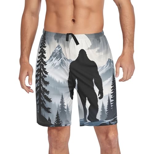 HOT ! Night Sasquatch Men's Sleep Shorts Pajama Pants with Side Pockets Elastic Waistband Drawstring