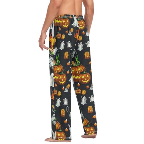 HOT ! Men’s Halloween Pumpkins Pajama Pants with Pockets, Comfortable Lounge Sleep Bottoms#403
