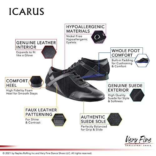 • Dance in comfot and style with the Very Fine Icarus Dance Sneakers. Suede outside and genuine leather interior to expand and fit your foot like a glove