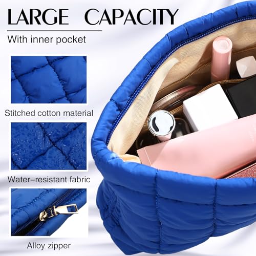 • Ample Space and Functional Size: our package includes 1 piece of blue puffy quilted makeup bag measuring 9.84 x 7.09 x 2.17 inches; It can easily accommodate your daily small essentials such as wallet, lipstick, keys, makeup essentials and so on, providing a well-organized space for all your items