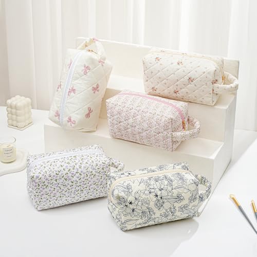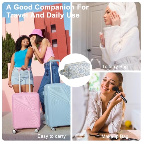 HOT ! Gleyemor Cute Small Quilted Makeup Bag for Women, Floral Cotton Cosmetic Bag, Toiletry Pouch Travel Essentials Christmas Gifts (Blue Floral)