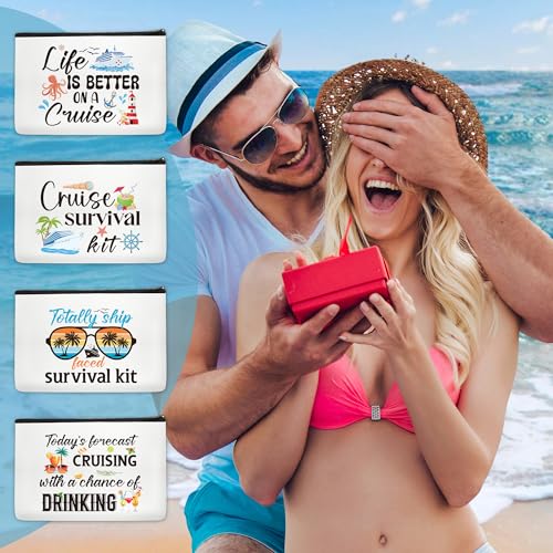 • Cruise Essentials - Our Cruise Survival Kit features 4 Pcs makeup bags Accessory Organizers, each with a unique cruise-themed design. These portable, cute, and fun travel bags cater to your needs, making them a delightful surprise for women setting sail on a cruise or celebrating a bachelorette party during summer vacation