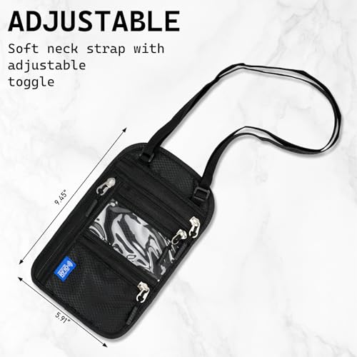 HOT ! Neck Wallet Passport Holder for Men Women RFID Blocking Water Resistant Hidden Travel Pouch with Adjustable Strap Holds Phone Cards Cash (black)