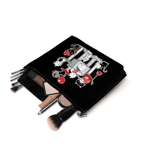 HOT ! Halloween Gifts for Women Makeup Bag, Funny Halloween Horror Cat Gifts Merchandise, Cute Halloween for Cat Kitty Lovers Black Cosmetic Bag Pouch