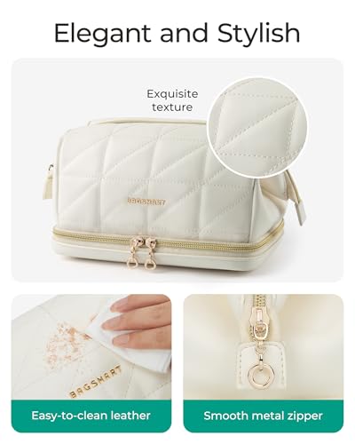 • 【Exquisite and Practical】Crafted from durable leather with a waterproof and easy-to-clean finish, this make up bag boasts a sophisticated appearance with metal zipper accents and elegant texture patterns. BAGSMART makeup bag organizer combines style with functionality to enhance your beauty routine