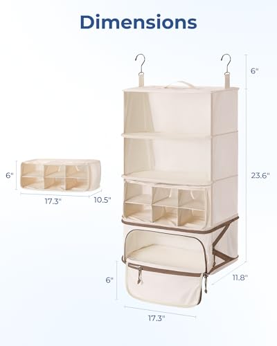 HOT ! BAGSMART 4-Shelf Hanging Closet Organizer for Cruise Ship Essentials, Large Capacity Packing Cubes for Women Travel, Foldable Closet Organizer for Bathroom/Closet Storage