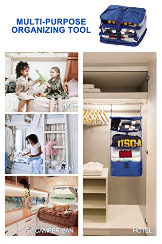 • [Stay Organized] - Portable Hanging Shelve allows you to pack and unpack effortlessly, making your trip less tumultuous and more enjoyable. 4 divided compartments for different clothes, perforated material is adopted for moisture and odor prevention. One luggage organizer bag is all you need to meet your multiple packing needs while providing the ultimate convenience for your business trips or vacation.