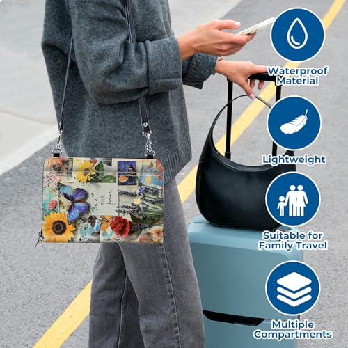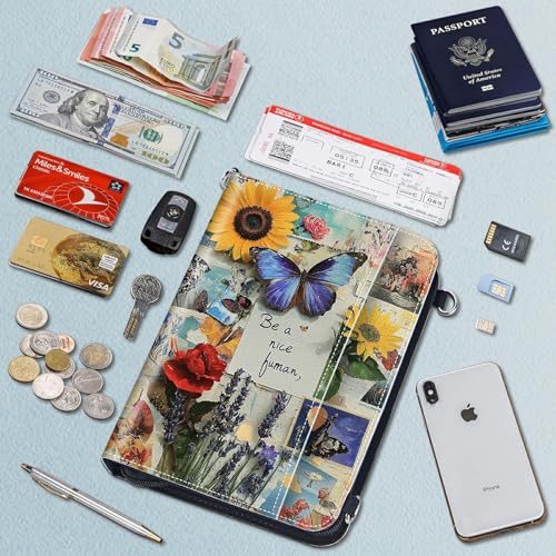 HOT ! Family Passport Holder for Travel, 6 Passport Organizer Wallet with RFID Blocking and Zipper for Women & Men - Butterfly Bloom