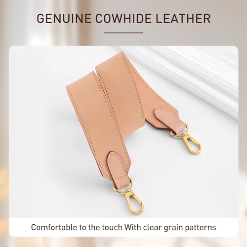 Doxo Vachetta Leather Wide Purse Straps Replacement Compatible with Lv Neverfull Graceful Speedy Tote Handbag, Cowhide Shoulder Bag Strap Handmade, 1.5W''/25.6L'',Beige 2