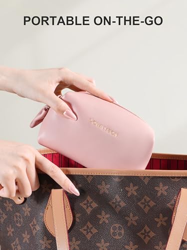 Rownyeon Makeup Bag Cosmetic Travel Toiletry Pouch Bow-knot Cute Handbag Leather Purse for Women Girls,Pink 1
