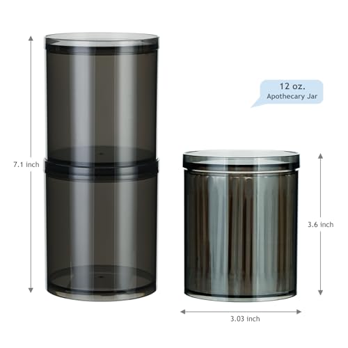 SheeChung Qtip Holder Dispenser Stackable Apothecary Jars with Storage Lids for Cotton Swabs, Balls, Pads, Floss Picks-2 Pack Acrylic Canister Black Bathroom Accessories Decor, Vanity Organizer (12oz) 3