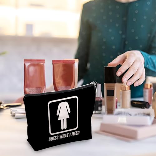 HOT ! Guess What I Need Makeup Bag, Funny Sarcastic For Women Friends, Black Makeup Pouch, Travel Toiletry Bag With Zipper, Birthday Anniversary Christmas Gifts For Best Friend Bestie Her