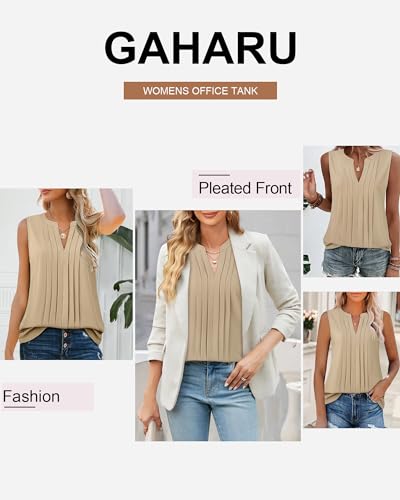 Gaharu Sleeveless Chiffon Tank Tops for Women Dressy V Neck Blouses Work Pleated Shirt 5